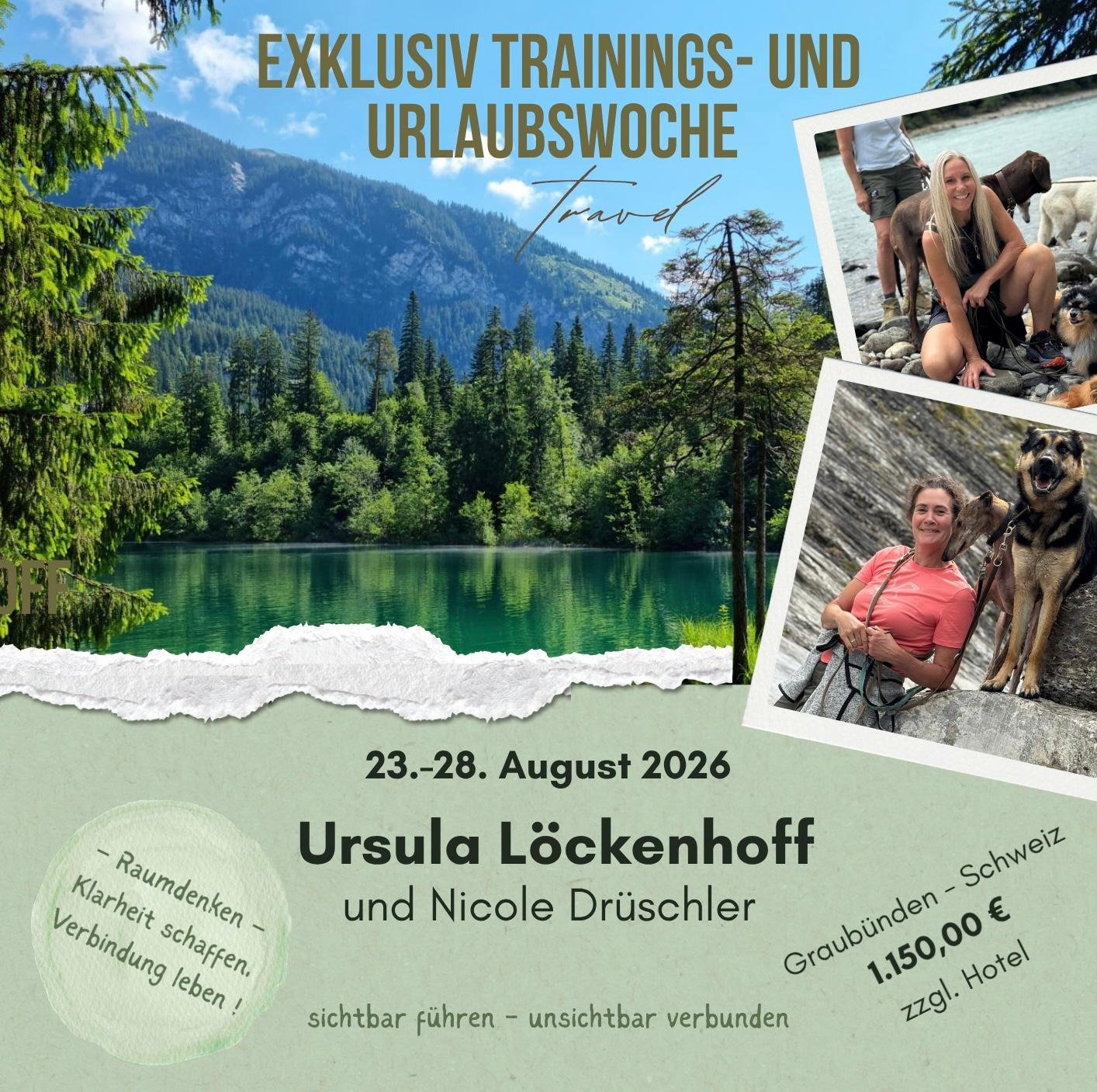 Verfeinere deine Kommunikation und schaffe neues Verständnis. Vom 22.– 28. August 2026 hast du die einmalige Gelegenheit, Raumdenken inmitten der beeindruckenden Bergwelt Graubündens intensiv zu erleben – ein exklusives Angebot für alle, die ihre Verbindung zu ihrem Hund auf ein neues Level heben möchten.